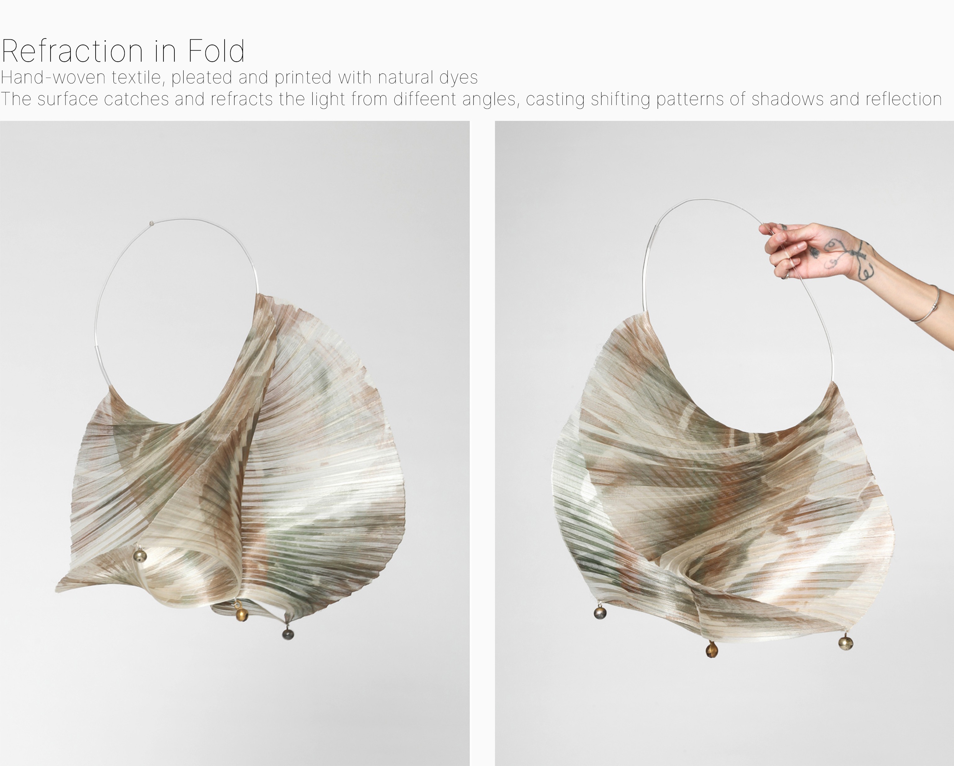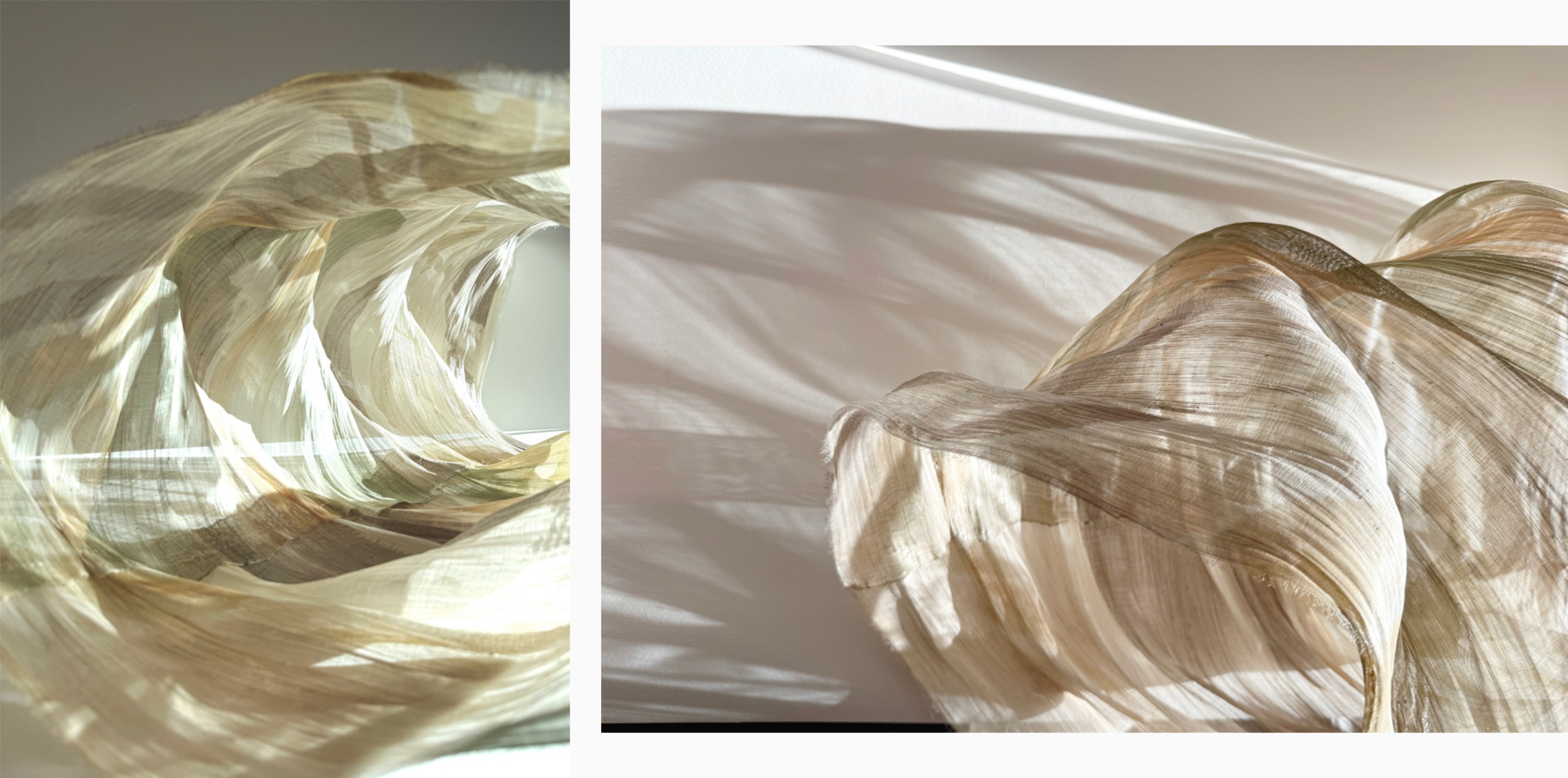 Inspired by the transient beauty of shadows and the emotional resonance of memory, project Shadow Play explores how textile surfaces evoke personal narratives and sensory experiences. To me, shadows embody inner fears and anxieties as fluid, intangible forms shaped by the unseen. By thoughtfully manipulating textiles, I rearrange and reimagine these symbolic forms, creating poetic dialogues between shadow, material, and meaning. Using biodegradable materials, primarily silk and banana fibres, I experimented extensively with techniques such as laser engraving and screen printing with eco-conscious dyes.